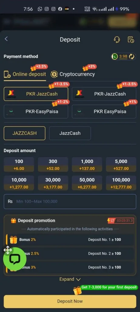 The minimum withdrawal typically starts at 100 PKR, though this may vary based on your account level and recent activity.