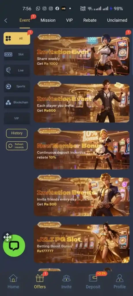 You can significantly boost your balance in the P44 game by inviting others to play: